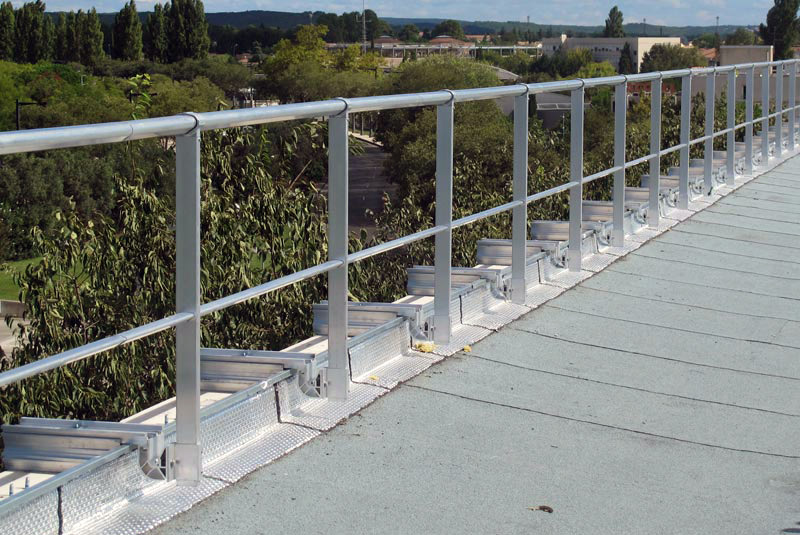VECTACO® Z plate isolated parapet guardrail is a collective system against falls from height designed to protect flat roofs not accessible to public. It is the best solution for a fixation on top of the parapet when there is a weather proofing higher than 60 mm, while using a watertightness system (cap).